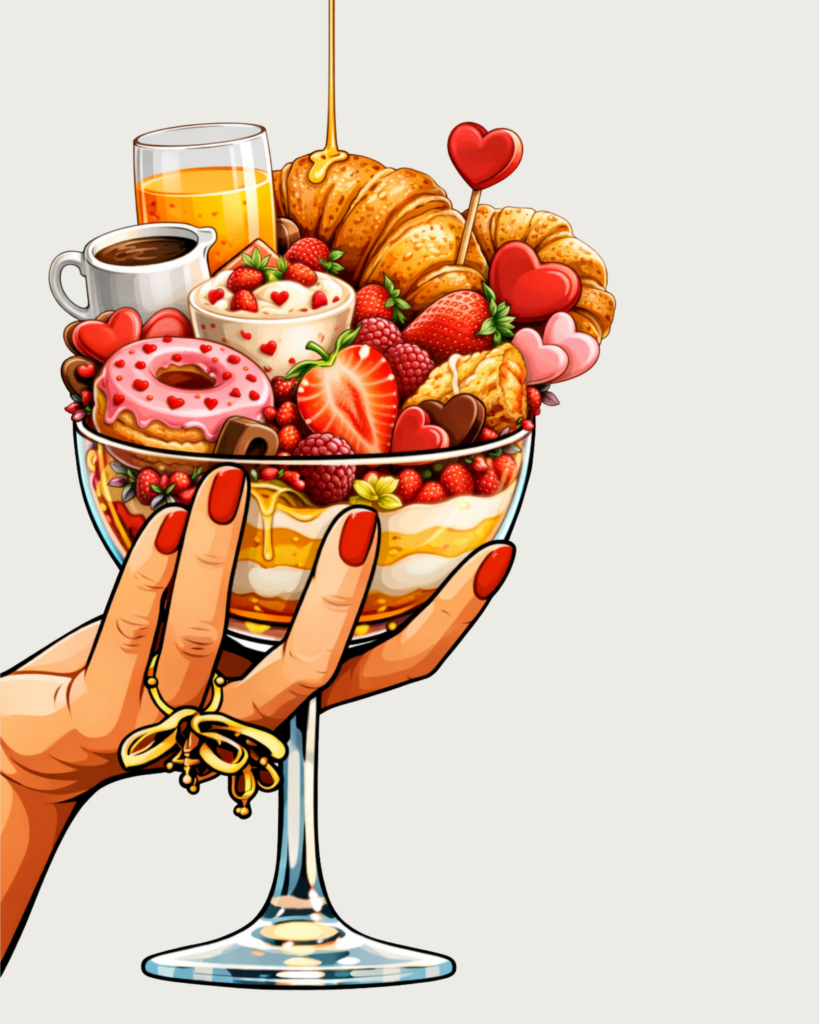 Tussen 07.30 en 09.30 uur bezorgen wij een ontbijt, ideaal om de dag liefdevol te beginnen. Geniet van verse broodjes, croissants, gekookt eitje, divers beleg, verse jus, een klein dessert en feestelijke bubbels om te proosten op de liefde.